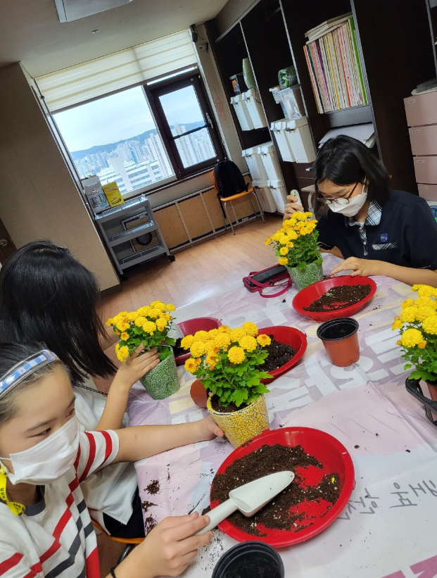 2022년 9월 15일 목요일 【 원예수업】- 담당T : 양진숙- 참여 인원 10명배윤빈, 김창아, 박은서, 김일범, 신재혁, 고건희, 한바다, 남석현, 김병현, 오성민국화꽃 심기가을꽃하면 국화죠^^예쁜 노랑색 국화를 심어봤습니다.