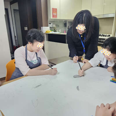 아이디어라던지 색감, 선을 자세히 볼 수 있는 미술수업이 아니였나 싶어요. 대체수업을 하면서 아이들의 눈높이를 모두 맞추어 실력을 끌어올리시는 강사님의 대단하심이 다시 한번 느껴졌어요.