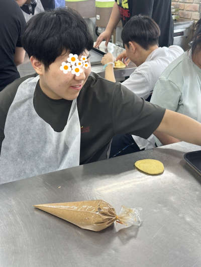 반죽도 동그랗게 만들고 땅땅 두들기며 짤주머니에 들어있는 모카를 달팽이집 그리듯 짜주어 오븐에 굽는 과정을 참 진지하게 열심히 만들었습니다.오븐에 구워지는 동안 담소도 나누며 게임도 하며 즐거워 하는 친구들의 모습에 그저 미소만 번집니다.항상 칭찬과 격려 부탁드립니다.