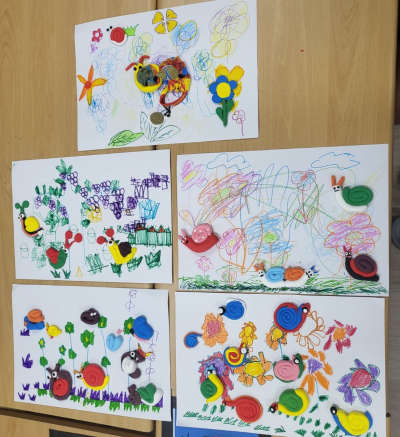 ♥️ 오늘은 달팽이를 만들기 위해 종이에 꽃과 나무 색칠을 해봅니다