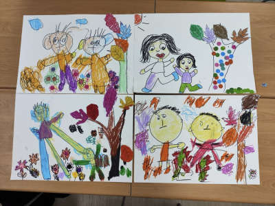 오늘 주제는 가을소풍 입니다.예쁜 단풍 잎 색칠도하고 오려서 예쁜 가을 소풍 장면을 꾸며 보았습니다.우진이는 롯데몰에 소풍갔다하며 할머니와 같이있는 장면을 그렸습니다.모두들 소풍을 생각하며 많은겄들을 꾸미며 즐겁게 그렸습니다. ^^