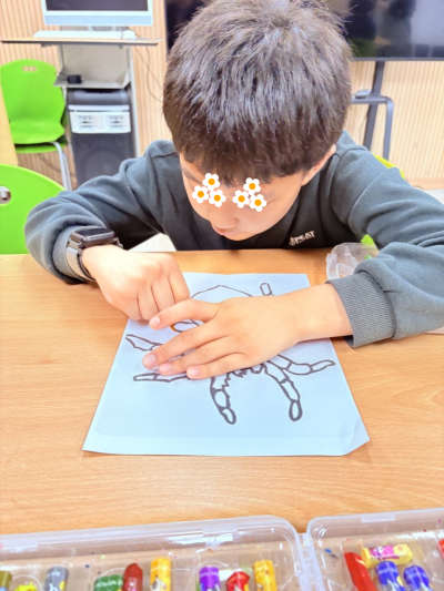 오늘 주제는 거미와 곤충들거미와 곤충 을 예쁘게 색칠하고 오려서 거미줄을 꾸며 보았습니다.클레이로 거미도 만들어보고 . 색깔모래도 썩어 촉감놀이도 했습니다.^^즐겁게 참여한 미술 수업이 었습니다.
