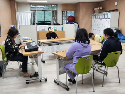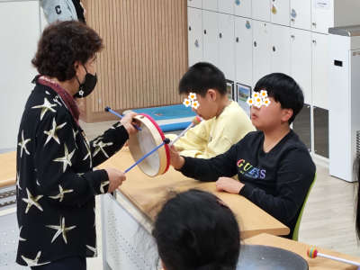 머리,어깨,무릎발 노래에 맞추어 신체를 터치하고 마지막 노래 부분에서 대상자가 만든가사로 바꾸어 노래 부르며 신체 터치 한다. 연주와 노래를 함께 합니다.선생님과 함께 즐겁게 카주를 이용,오션드럼,회전벨 등 여러 악기로~몸을써가며 연주 합니다. ^^